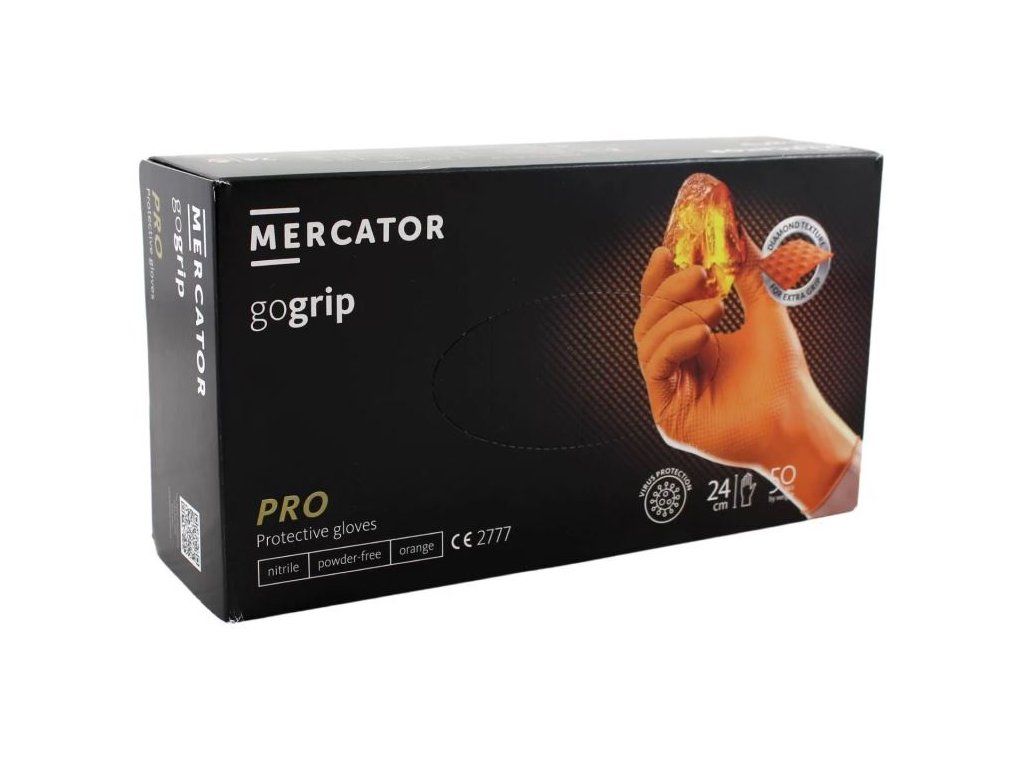 Rukavice nitrilové MERCATOR gogrip, oranžové, veľ. L (50 ks = box)